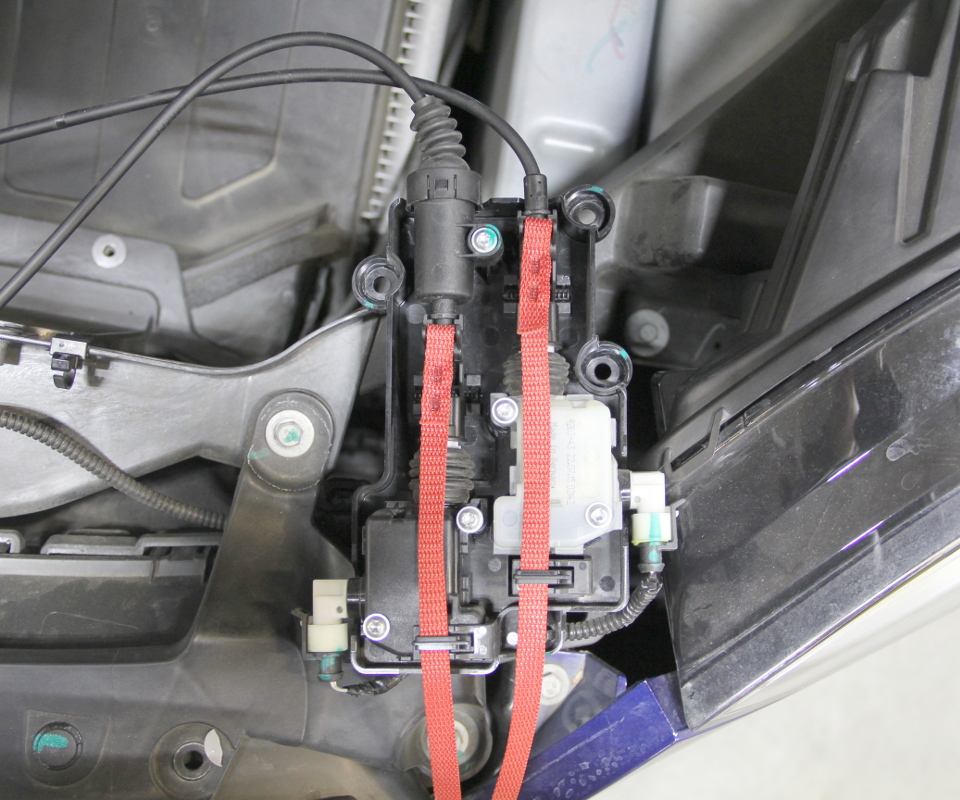 Remove the bolts (x3) that secure the actuator assembly bracket to the front end module (torque 10 Nm).