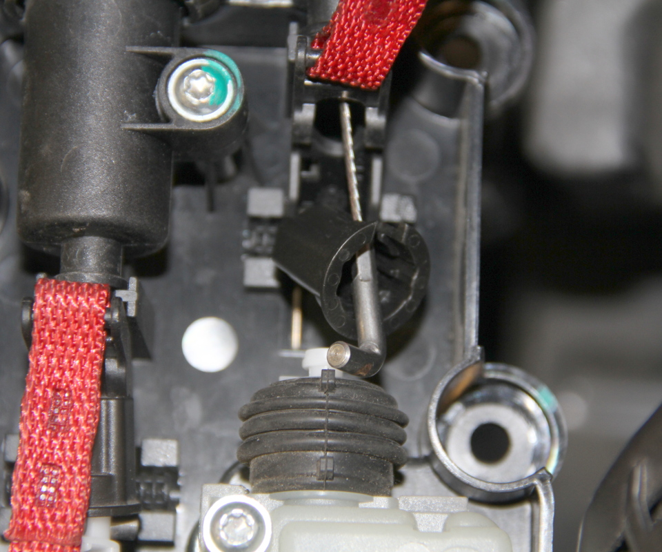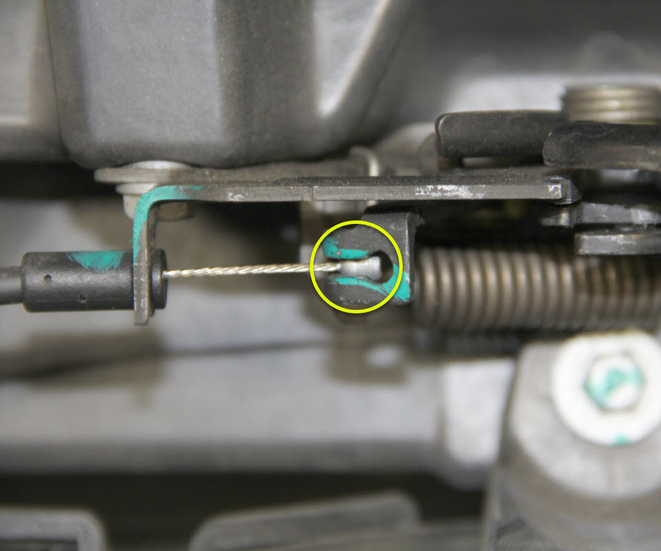 Release the primary cable from the actuator assembly bracket, and then pass the end of the cable through the manual release lever.
