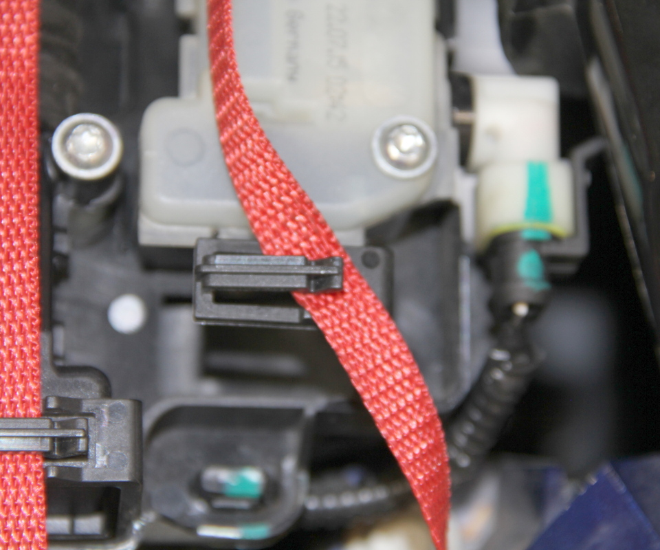 Separate the manual release strap from the primary actuator assembly bracket retainer.