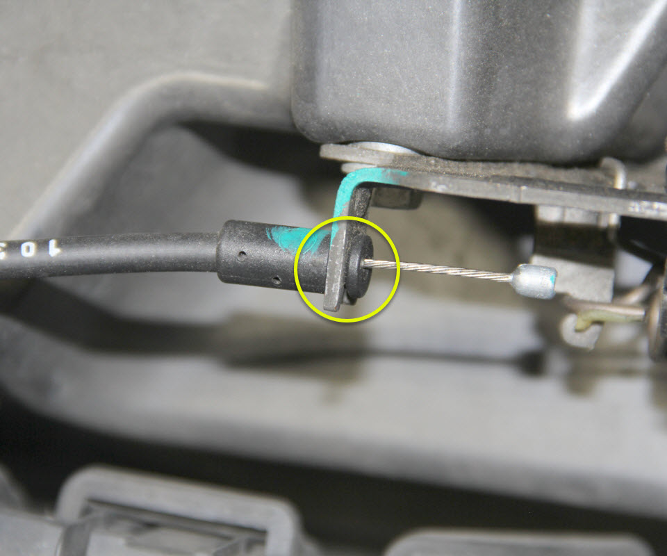 Release the clip that secures the primary cable to the latch bracket and remove the cable from the bracket.