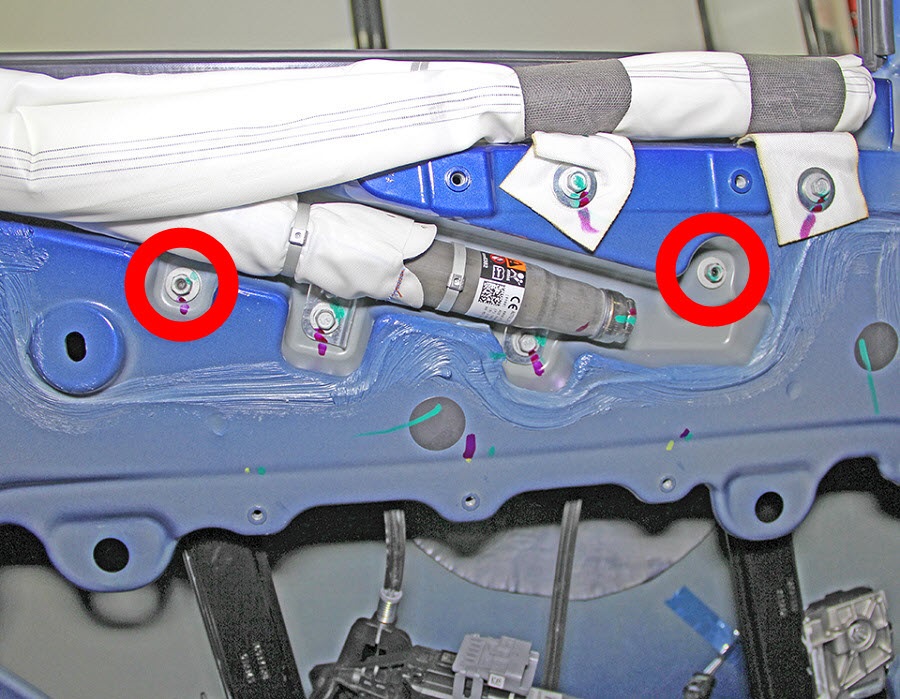 Remove the upper nuts (x2) that secure the regulator to the door (torque 10