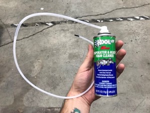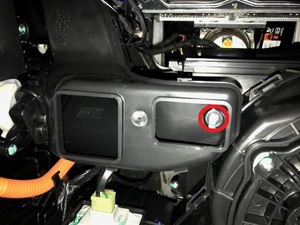 NoteThrough FET opening spray evaporator core directly with entire can of kool-it, Evaporator core is to the left of FET opening within HVAC assembly