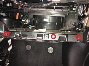 Remove fasteners securing passenger knee air bag to IP