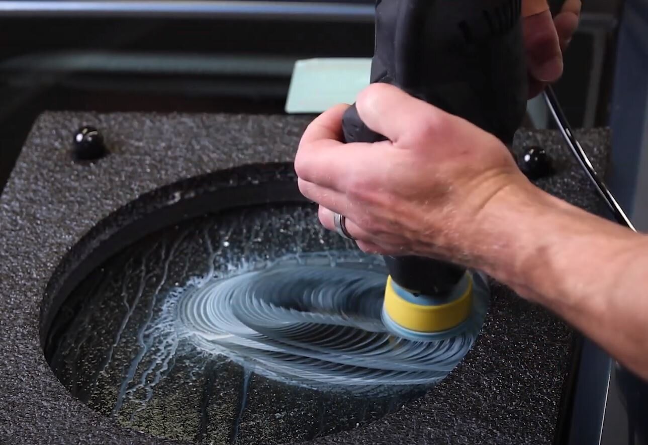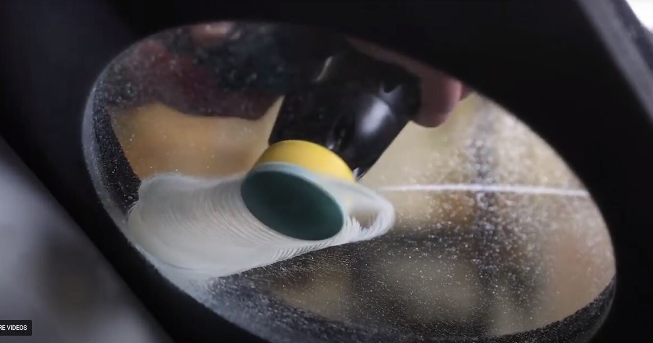 Re-pressurize the water feed bottle, and then repeat step 13 to finish polishing the windshield in the direction of the scratch.