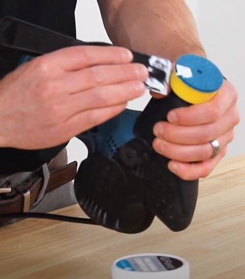 Apply a small amount of polishing compound to the moistened polishing disk, and then scrape the compound into the disk thoroughly.