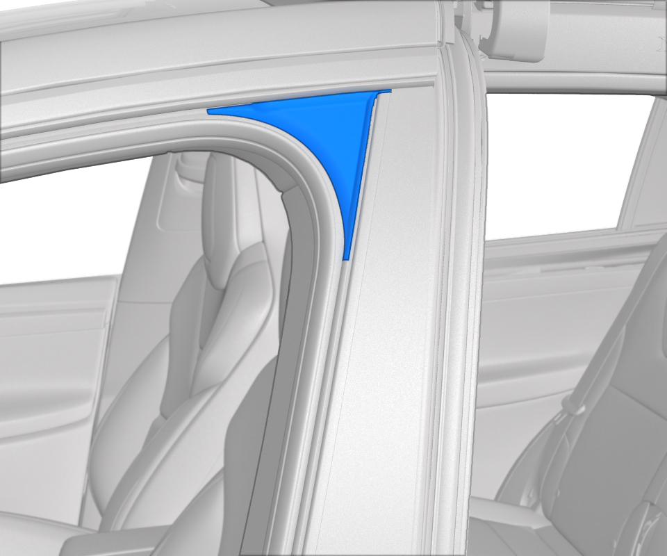 Attach the top triangle portion of the LH B-pillar applique seal into position against the body.