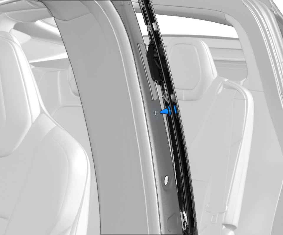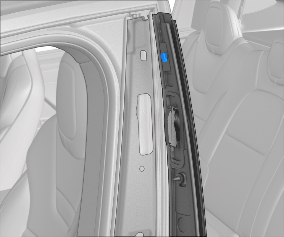 - Inspect the LH B-pillar applique seal to make sure it is fully seated, and adjust if necessary.