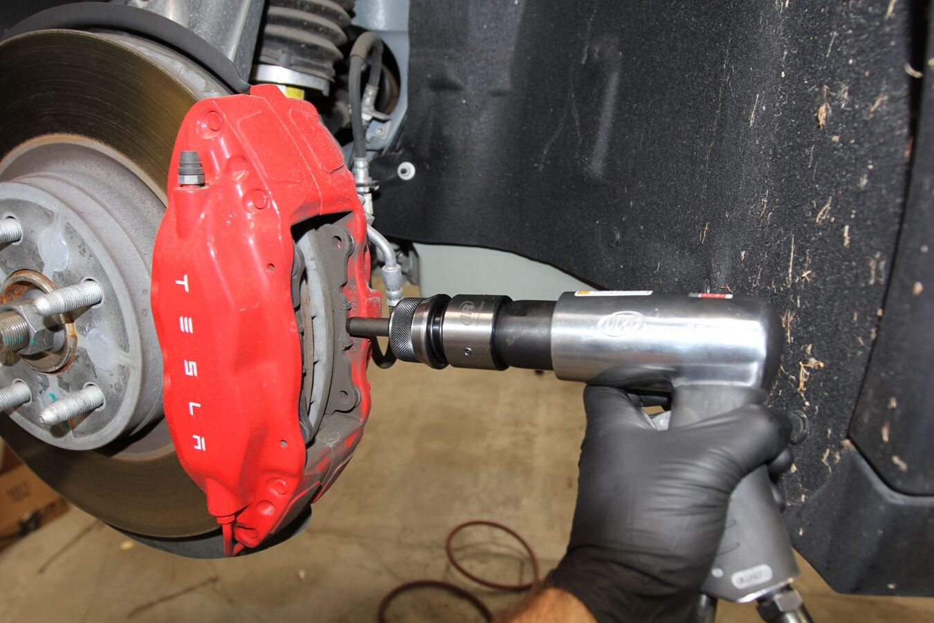 NoteWrap a shop rag around the caliper to protect the finish if using pliers. Air hammer may be required to free stuck pads.