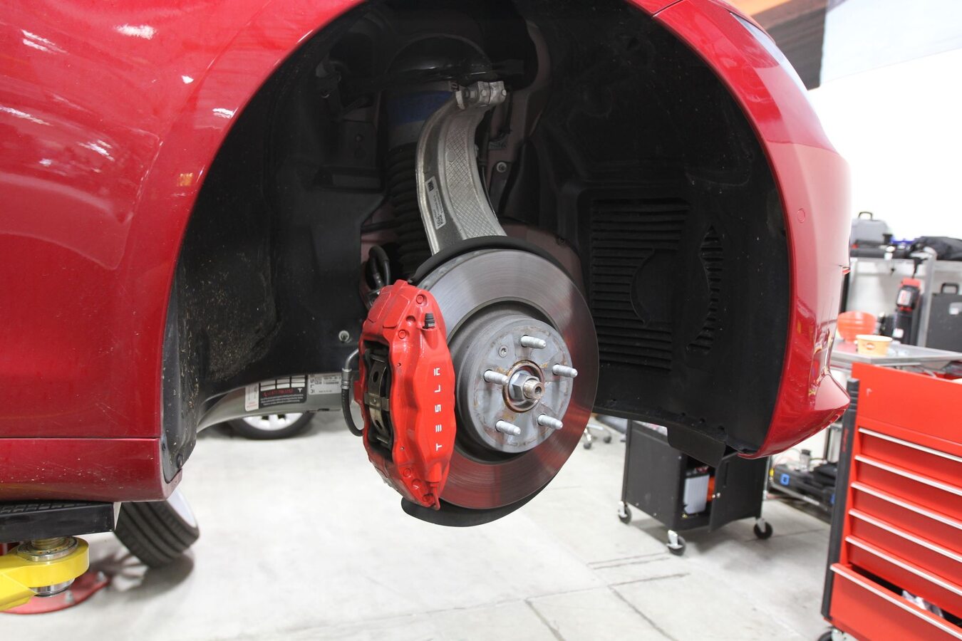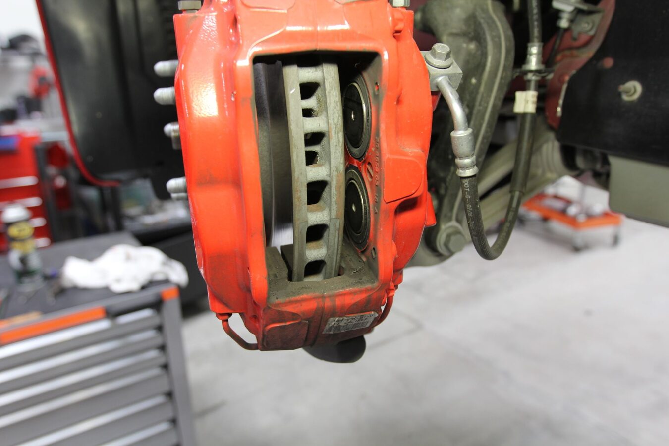 Remove LH front brake caliper from LH front knuckle assembly and hang.