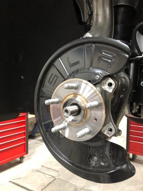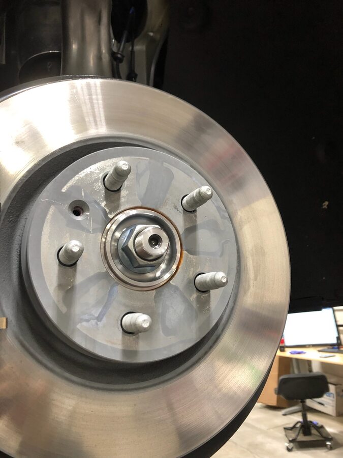 Remove bolt securing brake rotor to hub and bearing assembly.
