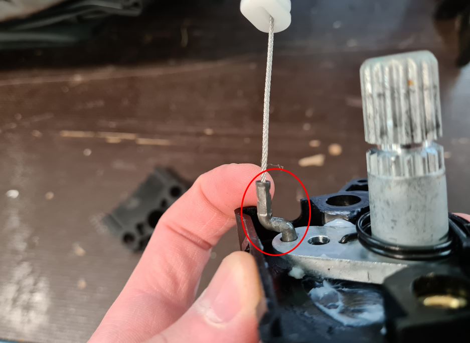 Remove the Z-shaped cable from the gear actuator.