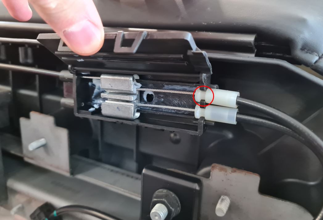 Remove the upper recliner cable from the inside of the seat recliner