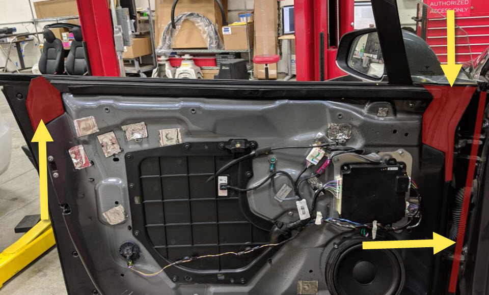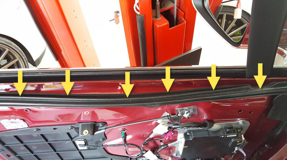 - Clean up any double-sided tape adhesive residue from the seal that might be attached to the door with a plastic trim tool and Isopropyl Alcohol (IPA) wipes.