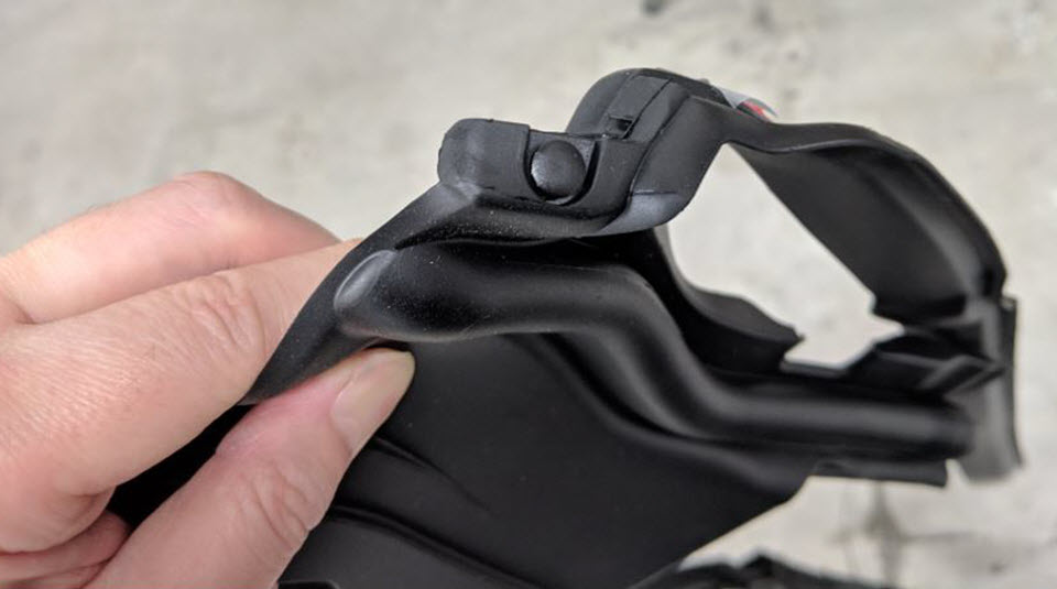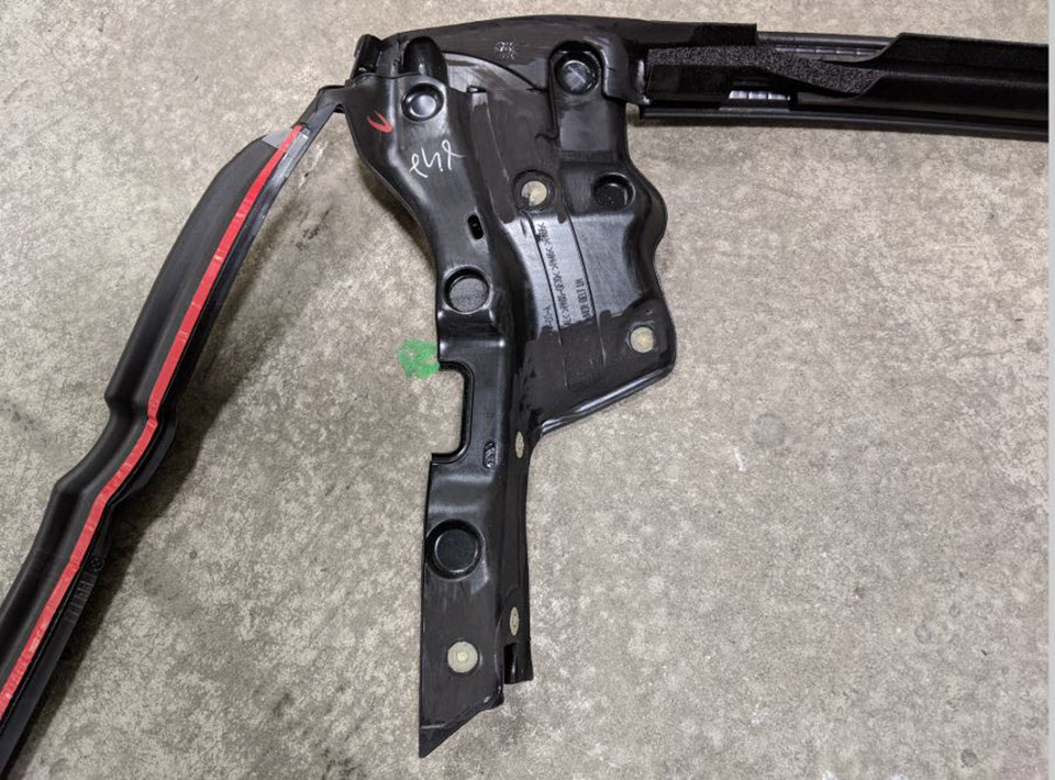 Remove the pins (x5) from the front molding of the new inner belt seal using diagonal cutters.