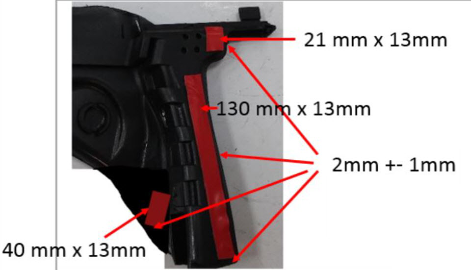 NoteMake sure that the tape is 2 mm from the edge of the front molding.