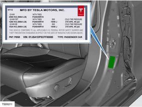 A manufacturing certification label is affixed to the driver’s side door jamb, except for vehicles in China, where it is affixed to the passenger's side door jamb.