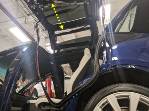 - Install the LH upper rear door glass assembly. See Door Glass - Rear - Upper - LH (Remove and Replace)