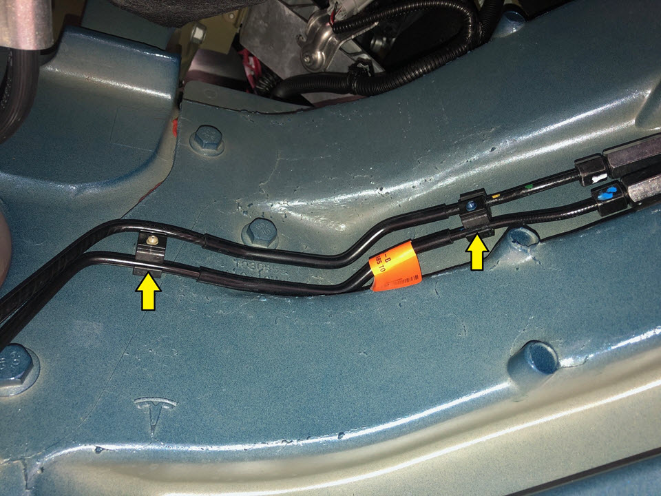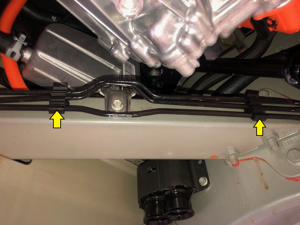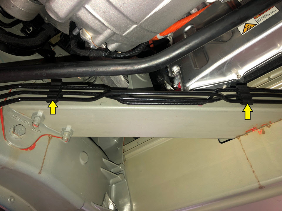 Remove the clips (x2) that attach the brake line bundle to the LH side of