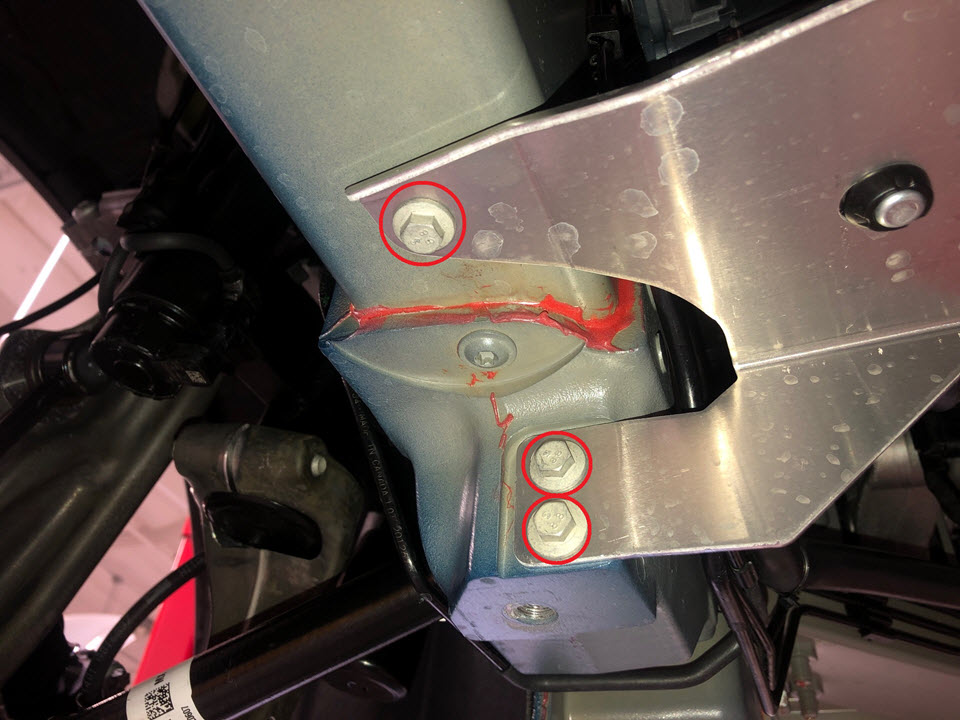 Remove the bolts (x3) that attach the RH front adapter rail to the ABS