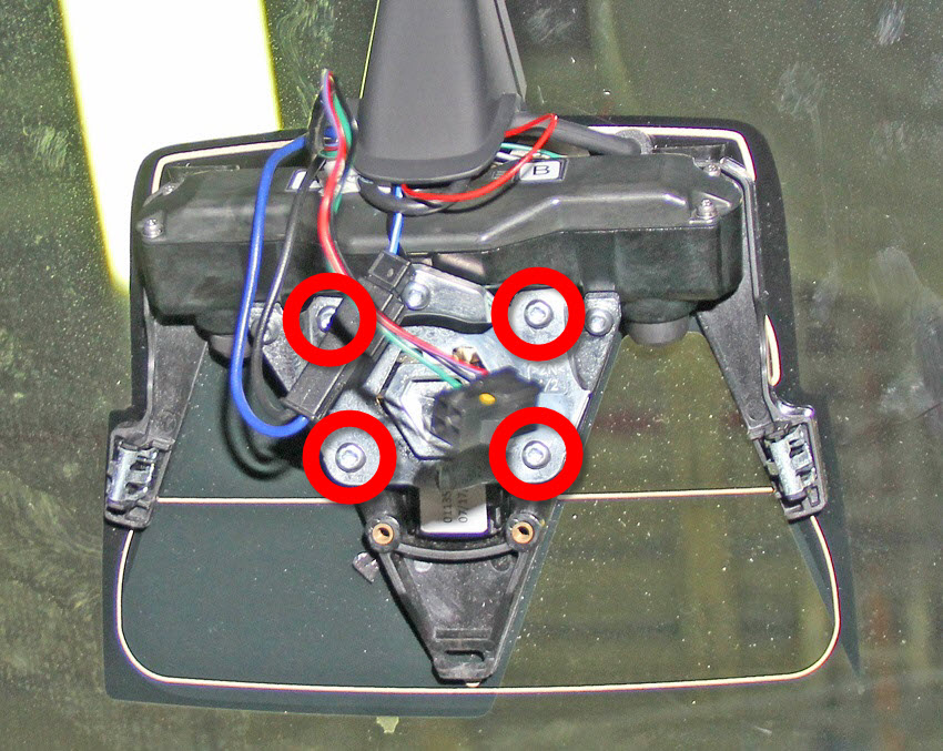 Remove the screws (x4) that secure the camera mounting plate to the windshield