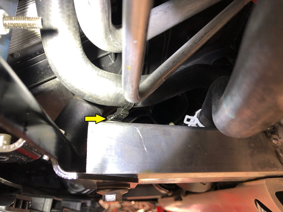 Disconnect the hose clamp that attaches the hose at the chiller using flexible spring band clamp pliers.