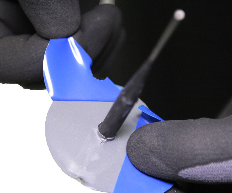 Hold the Minicombi insert over the puncture channel. Use the paint stick to