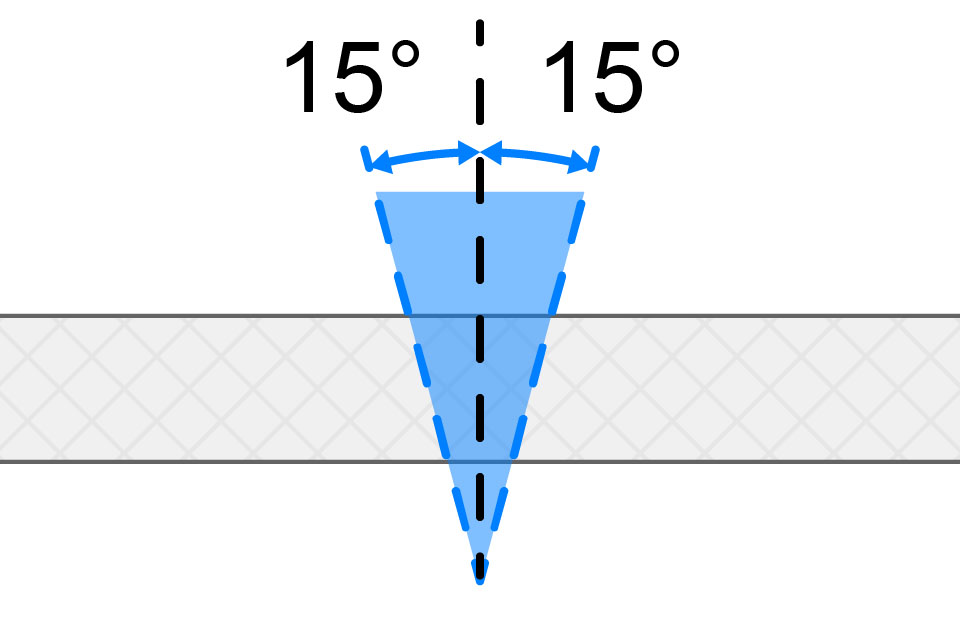 channel must be no more than 15 degrees from perpendicular to the tread surface.