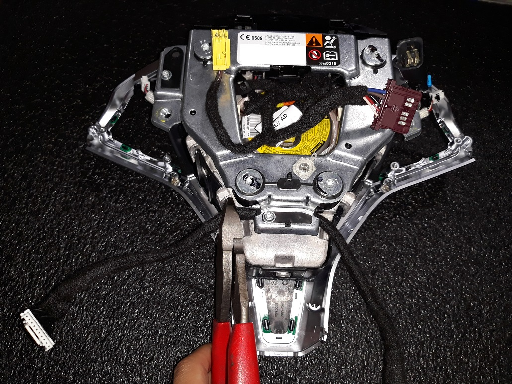 Cut through the control switch harness, and then remove the harness from driver's air bag module.