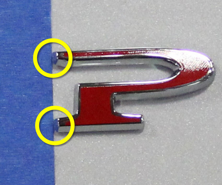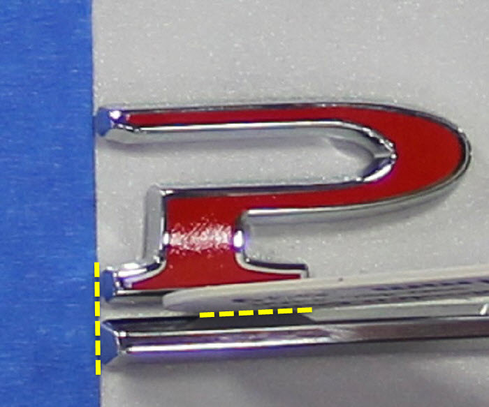 Place a 1 mm feeler gauge at the base of the “P” badge. Affix the LH edge