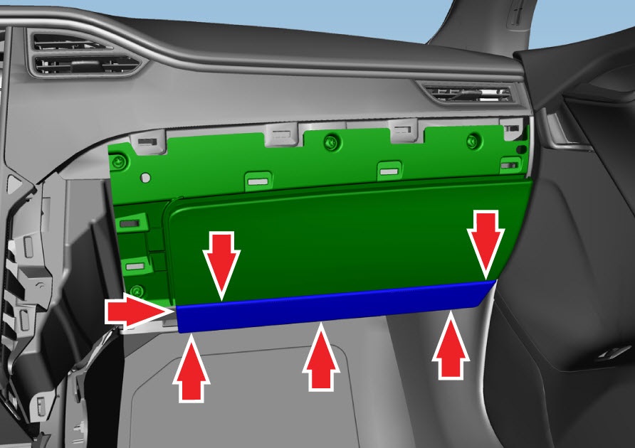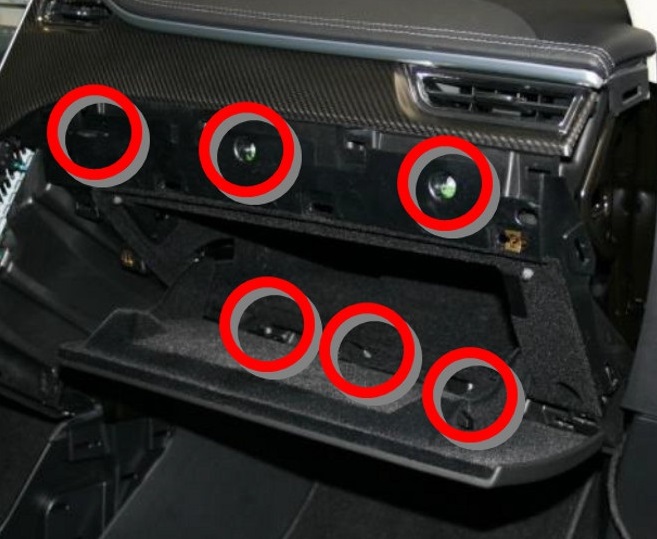 Remove the screws (x6) that secure the glove box to the instrument panel