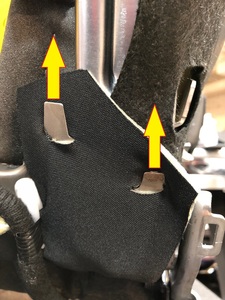 Note7x clips, To release, rotate the clips off of the frame from the inside out, Seventh clip is located tucked beneath top center upholstery clip