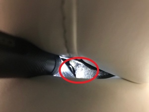 CAUTIONMake sure that the driver side airbag mounting studs extend out of the holes of the chute.CAUTIONHandle the airbag with extreme care when installing it into the airbag chute. The airbag is configured/folded in a specific manner and will need to be replaced if it is dropped, altered or manipulated in any way.NoteRefer to the following video for proper care when installing the driver side airbag into the airbag chute, and when installing the chute through the seat foam.