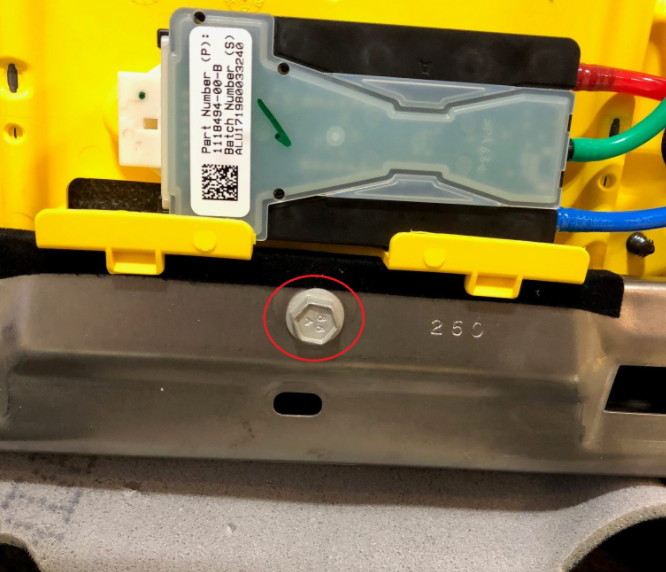 5 Nm (3.7 lbs-ft)NoteThe bolt is located below the lumbar ECU. Removing this bolt allows ease of access for the following step.TIpUse of the following tool(s) is recommended:- 10 mm socket