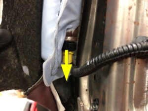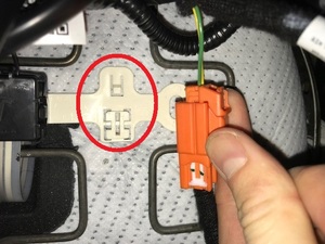 Pull the seat upholstery away from the air bag to gain access to the air bag electrical connector