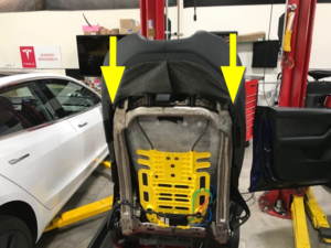 Note1x retaining spring, Depress the material around the headrest post to expose the release clip