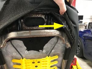NoteStart by pulling the bottom of the seat trim away from the seat frame, ensure the heater harness and the trim is clear of the frame, Lift straight up on the sides of the trim, moving the trim from side to side, to free it from the frame