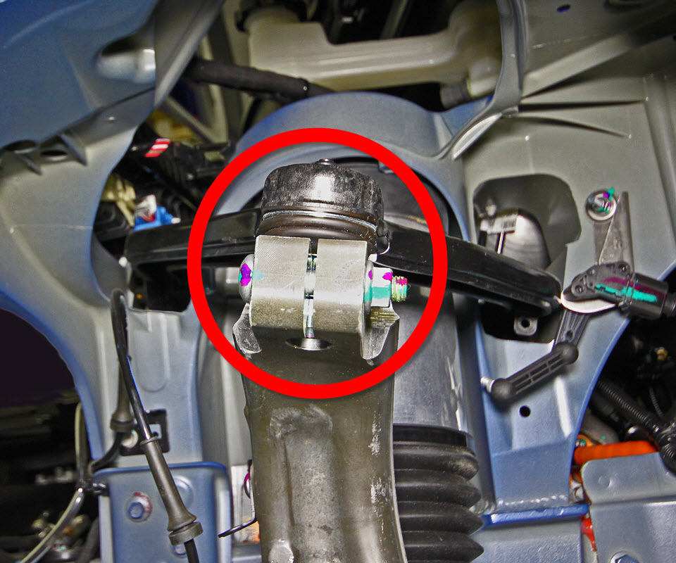 - Install the front upper control arm, and then hand tighten the bolts (x2) that attach the front upper control arm to the vehicle.