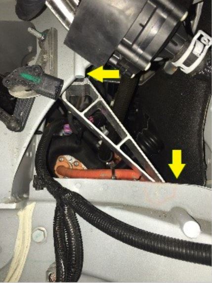 move powertrain coolant pump 2 to gain access to the rear bolt that secures the