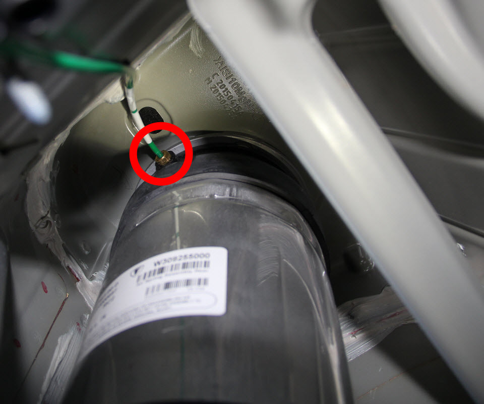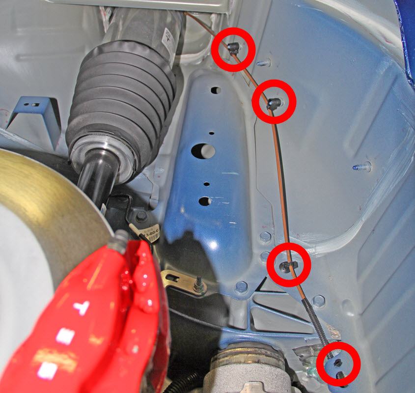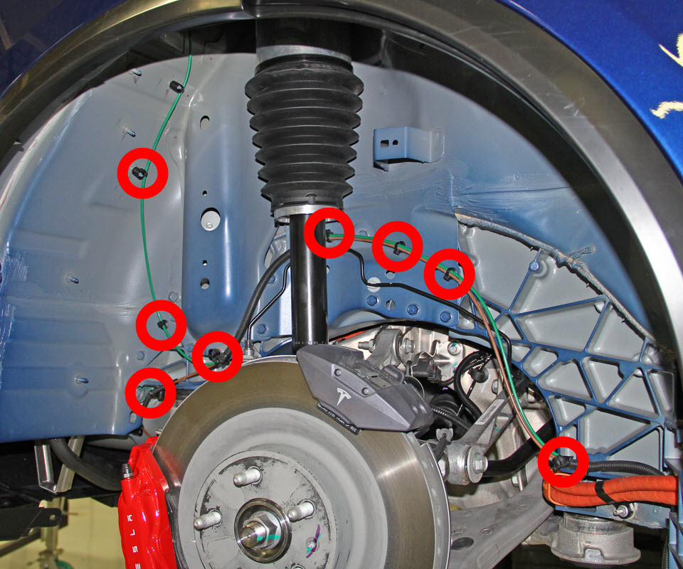 secure the air spring module lines (green and brown) to the rear RH wheel