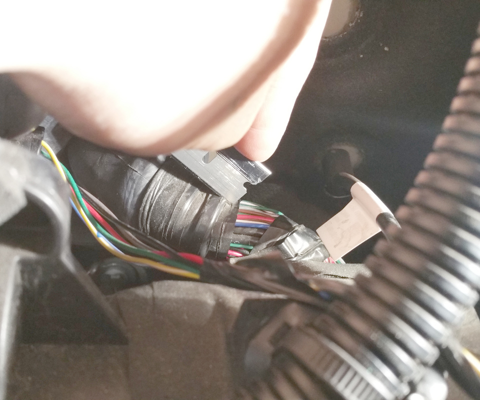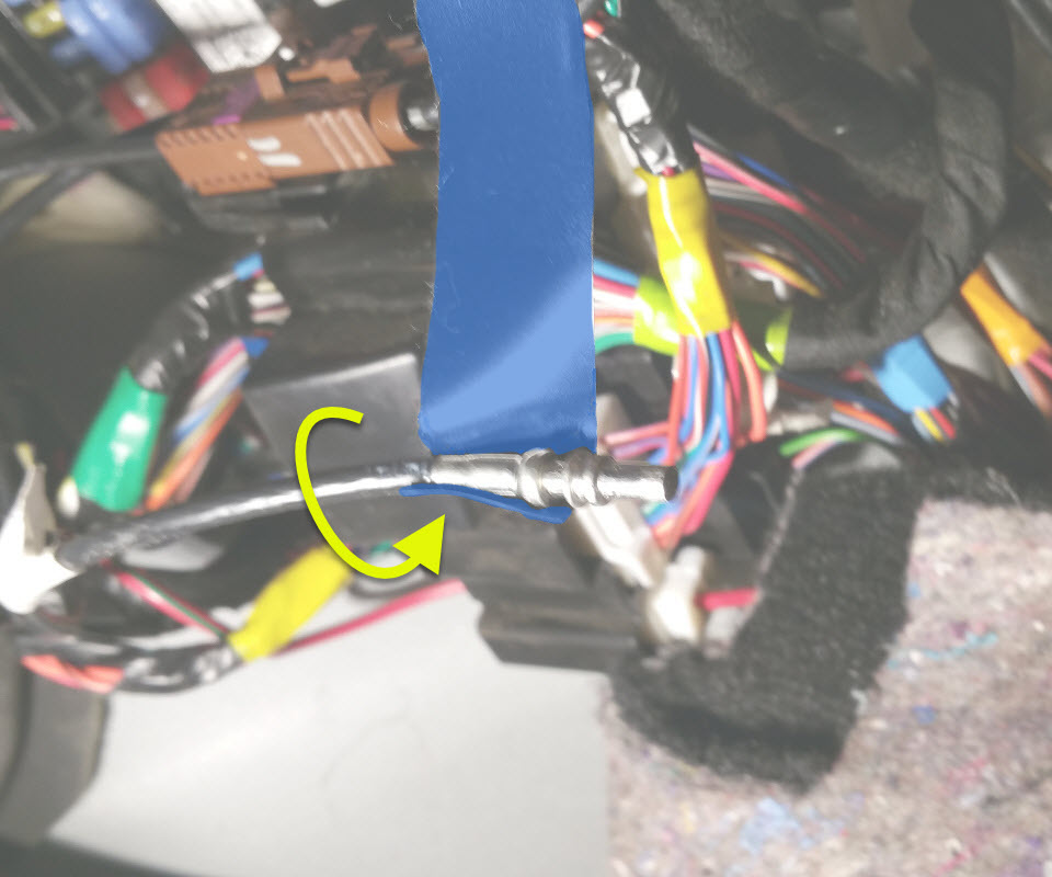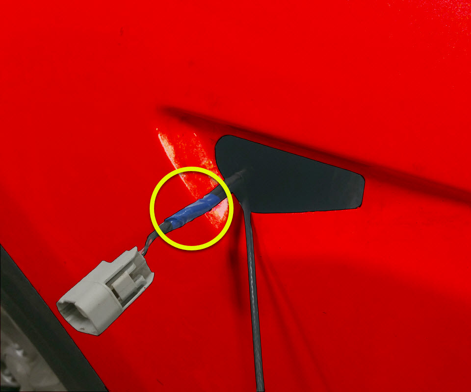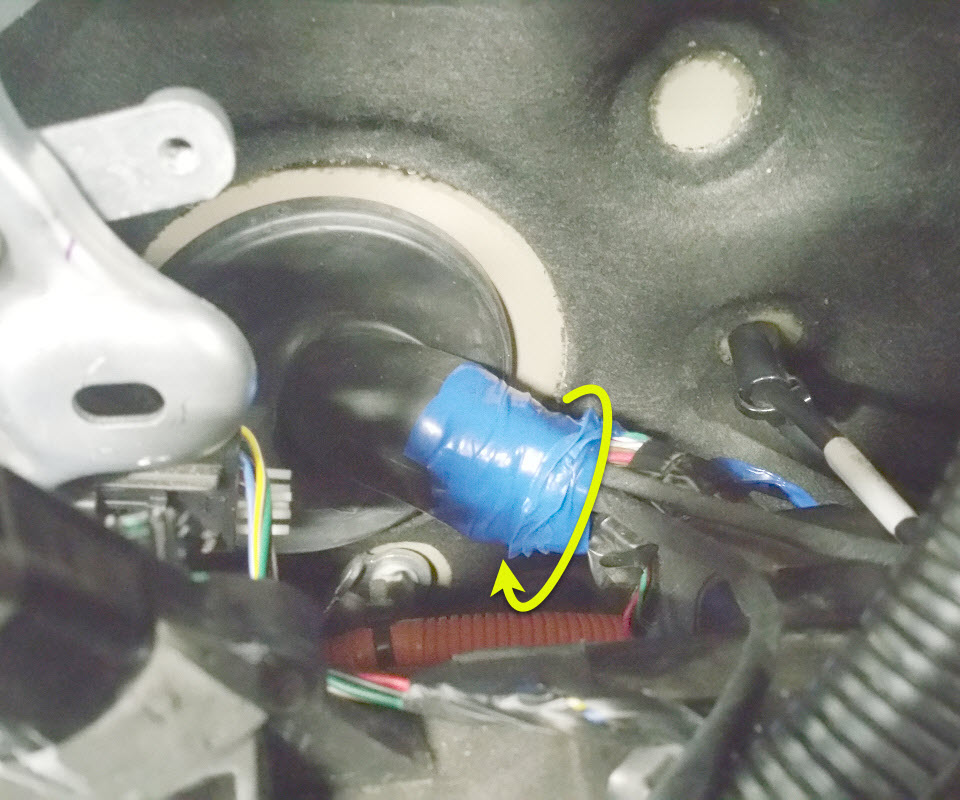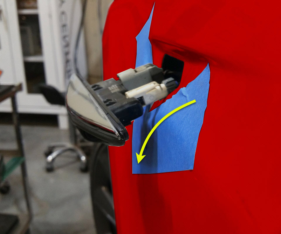 Remove the connector from the old coax cable, and attach the old coax cable to the LH repeater light electrical harness with tape.