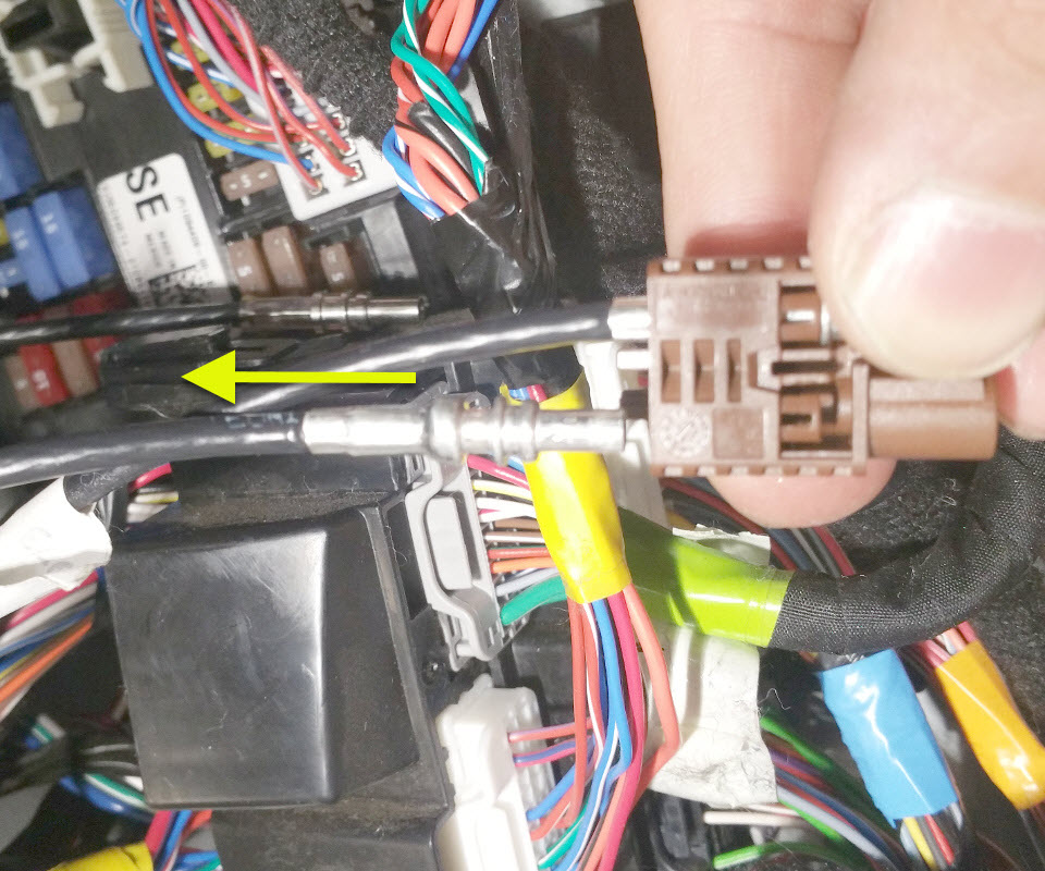 lift the locking tab of cavity 1 on the dual connector, and at the same time, pull
