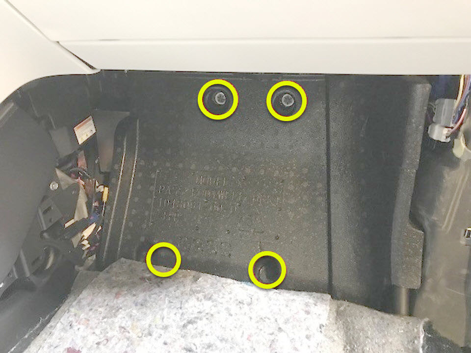 Release the clips (x4) that attach the foam floor support to the body, and then remove the support from the footwell