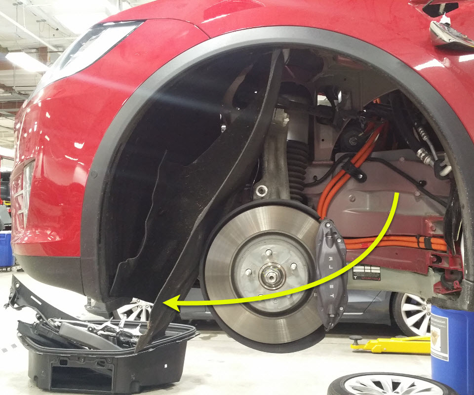 Fold the liner forward, and then place the liner between the brake rotor and fascia.