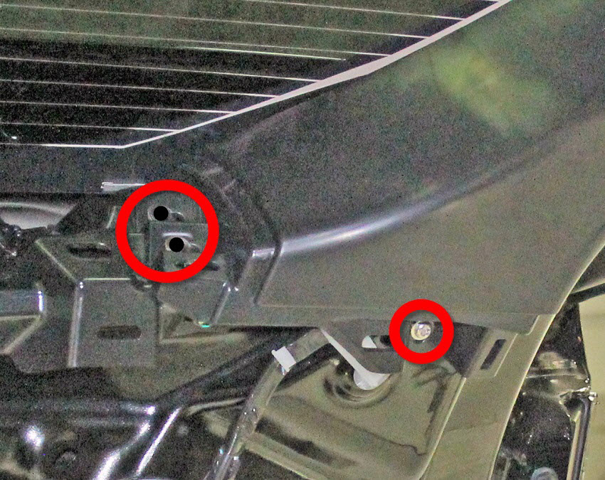 Remove the pushclips (x2) and screw (x1) that secure the bottom of the side