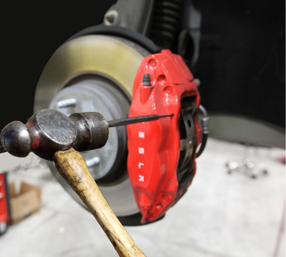 Tesla-approved brake caliper lubricant to the brake pad edges that contact