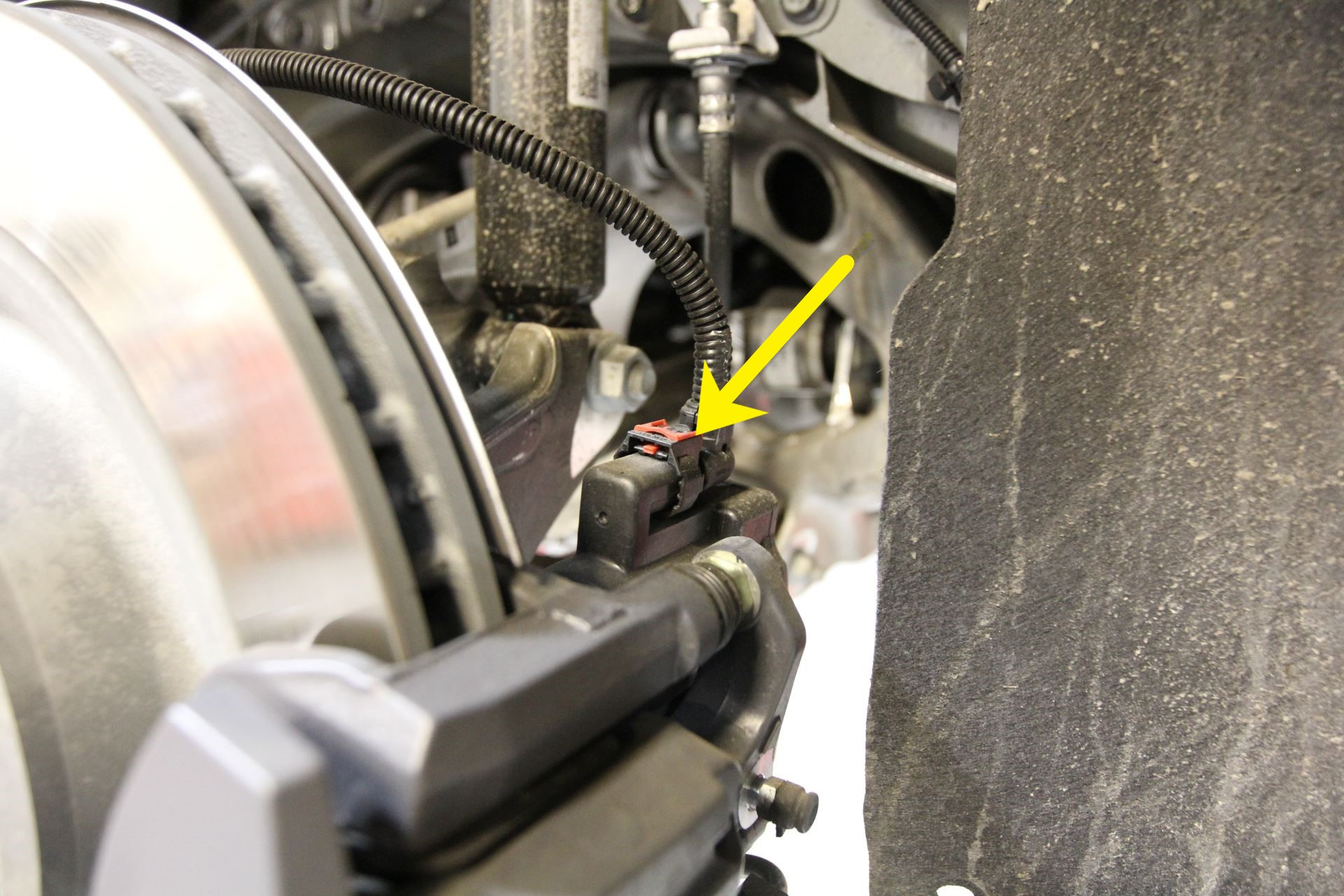 harness to the rear LH caliper connector, fasten the red retaining tab, and