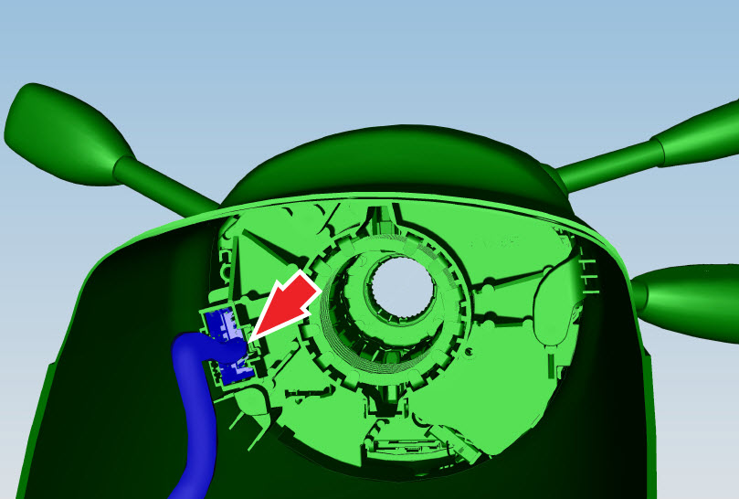 - Remove and discard the airbag harness retaining clip from the steering column module harness connector.