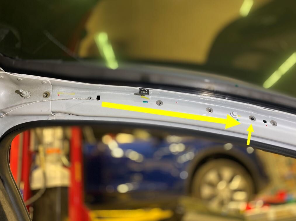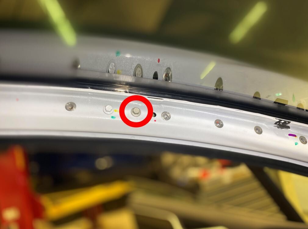 Measure the distance between square hole in the LH A-pillar and affected riv nut hole