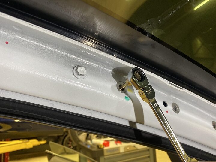 NoteUse 7mm drill bit to remove damaged riv nut, pay attention not to drill on Inner and reinforcement A-pillars
