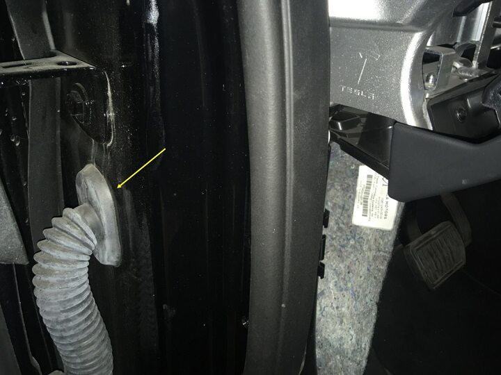 NoteInsert pvc hose through the A-pillar grommet hole into the A-pillar reinforcement, guide the hose to the bottom of the reinforcement pillar and apply a small amount of expandable foam (approximately 15 clicks) to secure fallen riv nut
